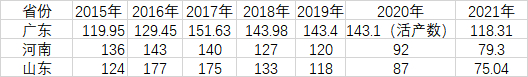 从广东、河南和山东三省2015年以来的出生人口变化来看:2015年,河南出生人口数量位居第一,山东第二,广东仅位列第三;在全面二孩政策实施后的2016年,山东出生人口数量高达177万人,位居第一,增幅也高达43%,相比之下,河南和广东虽然有所增加,但增幅分别只有5.14%和7.9%;2017,山东继续保持175万人的高峰,广东跃居第二,达到了151.63万,河南退居第三。