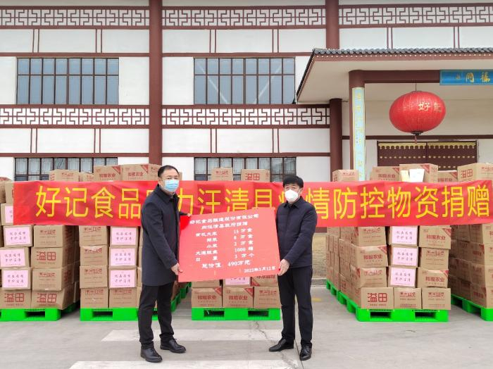 3月12日,好记食品酿造股份有限公司向延边朝鲜族自治州汪清县共捐赠有机大米、有机小米等价值490万的抗疫民生物资,全面助力汪清县抗疫工作。