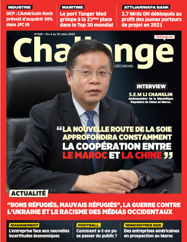 2022年3月4日,摩洛哥主流期刊《挑战者周刊》发表中摩关系专刊,重点介绍中摩关系历史以及双方在共建“一带一路”、经贸、文化、卫生等领域合作。