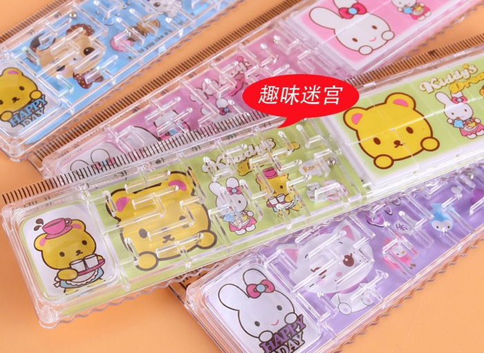 还有一款滚珠迷宫尺,是在彩色尺面上加了层立体“迷宫”,还置入一颗小钢珠。端起尺子左右微微倾斜,即可操控小钢珠“走”迷宫。该产品宣称,玩具尺子“可以在脑子混乱、压力大的时候适当放松,从而让头脑更灵活。”