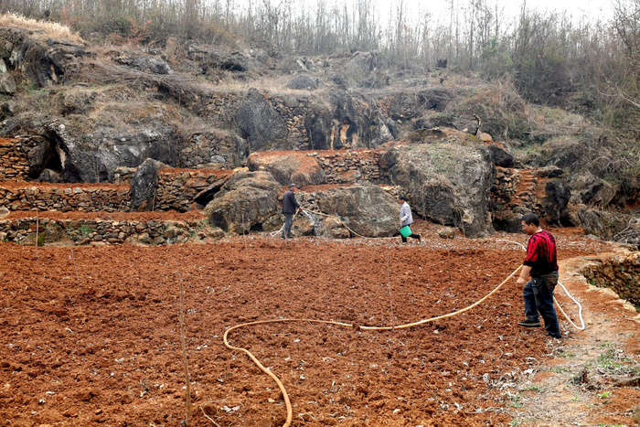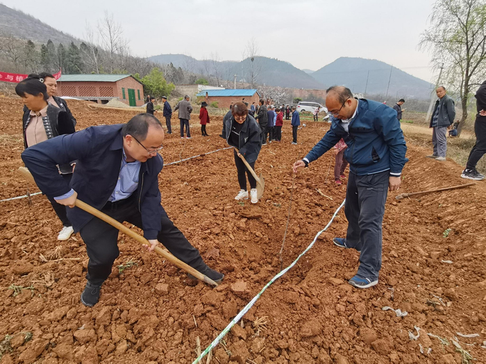 近日,河南省内乡县大路村的村民们忙起了一件大事,他们三人一组、五人一群,扶正树苗、挥锹培土、堆围起堰,将7000余株、十余个品种的高品质樱桃苗种到山脚下。这些珍贵的树苗由北京市南水北调对口协作河南挂职团队提供,承载了村民增收致富的希望。