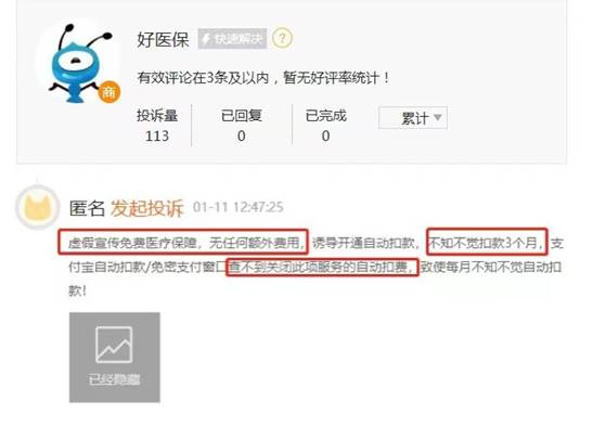 黑猫投诉平台上,不少消费者投诉好医保以免费医疗保障为噱头诱导入保,未通知情况下扣款数月,无法关闭自动扣款。