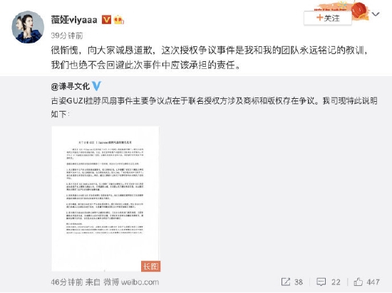 2021年5月,薇娅在直播间售卖了一款Supreme x GUZI联名挂脖风扇,多次强调该商品为爆款,宣称是美国联名,非香港代理。但随后,微博博主Abestyle发文质疑薇娅所售卖的Supreme x GUZI联名是假货。后续薇娅发布声明承担责任并道歉。