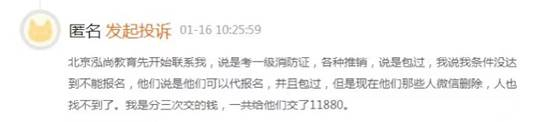 在黑猫投诉平台上,不少消费者投诉泓尚教育虚假宣传一级消防工程师证书“包过”以诱导报名,花费上万元报名后无法联系相关工作人员。