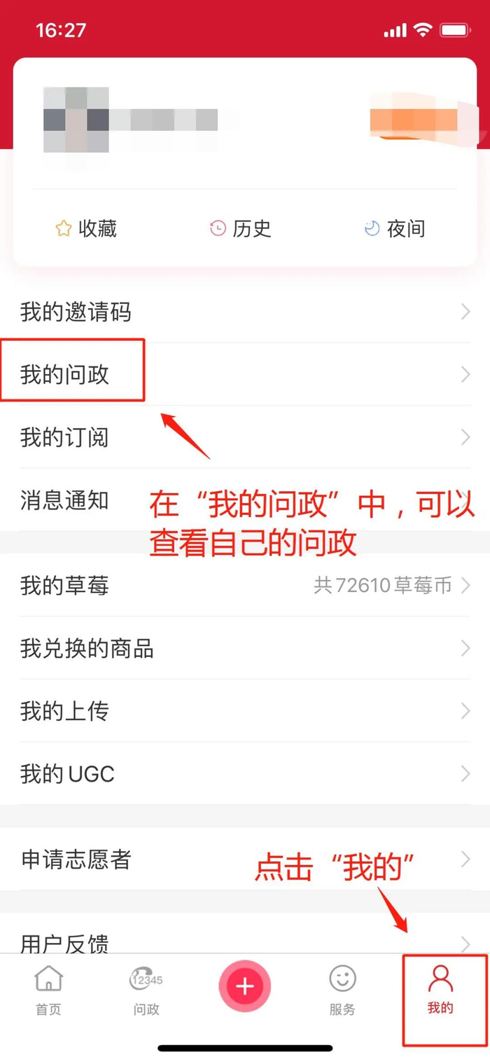 可以查看自己的问政内容