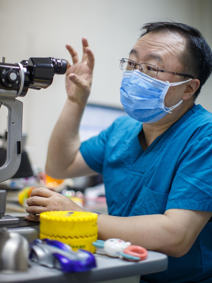 跟孩子之间建立一种有效的交流是小儿眼病诊疗的基本条件,卢海不仅要熟悉当下最受小朋友欢迎的动画片,还要了解主要角色、人物关系等,“这样我才能跟孩子有共同语言。”