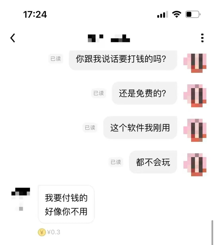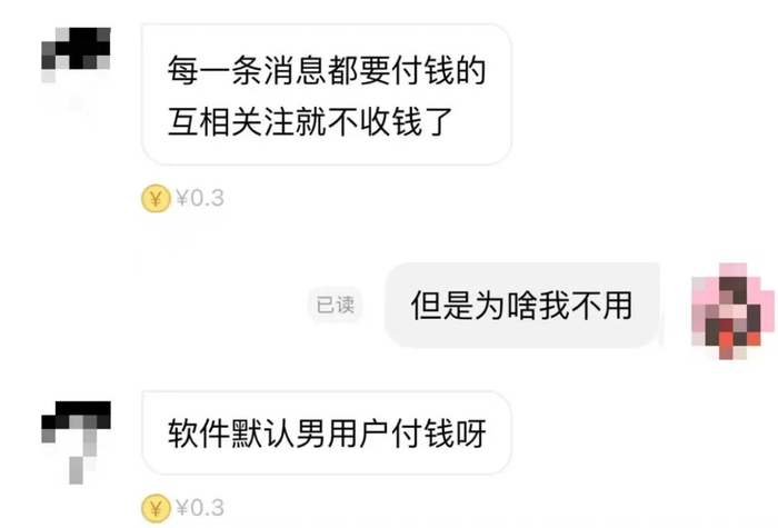 其中一位男性用户告诉时代周报记者,在双方未互关前,男方免费聊天次数不多,后续平台默认男性付钱聊天,“每一条都要付钱。”
