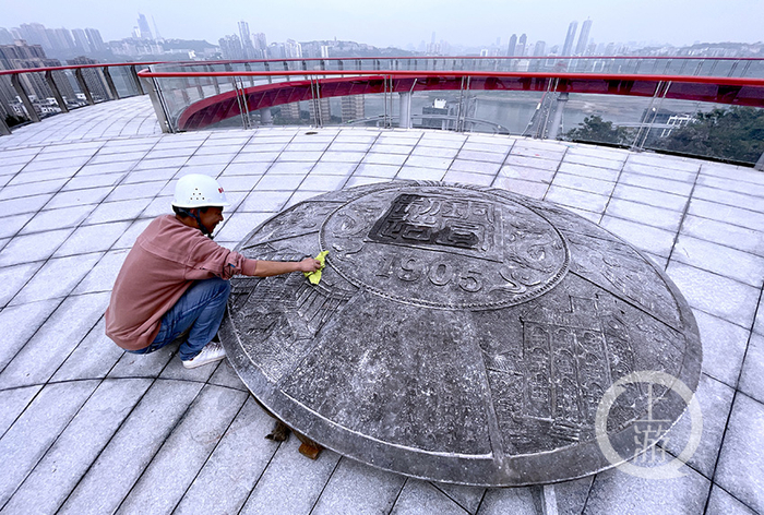 观景台的中心是一个直径为3米的铜雕“铜园局的历史传承”。