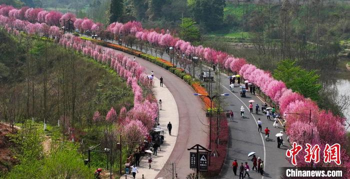 3月17日,四川乐山市中区绿心公园盛开的榆叶梅、桃花、樱花竞相绽放,嘉州处处呈现醉人的春色,放眼望去粉色的花海不见尽头。市民纷纷走出家门,行走在如画的风景里,尽情享受春意。乐山绿心公园规划保护面积10.77平方公里,森林覆盖率超过87%,是四川地级市中最大的城市中心绿地,被誉为乐山的“城市之肺”。