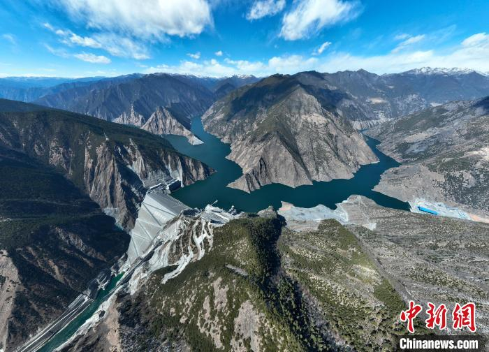 俯瞰雅砻江两河口水电站大坝。 雅砻江水电供图