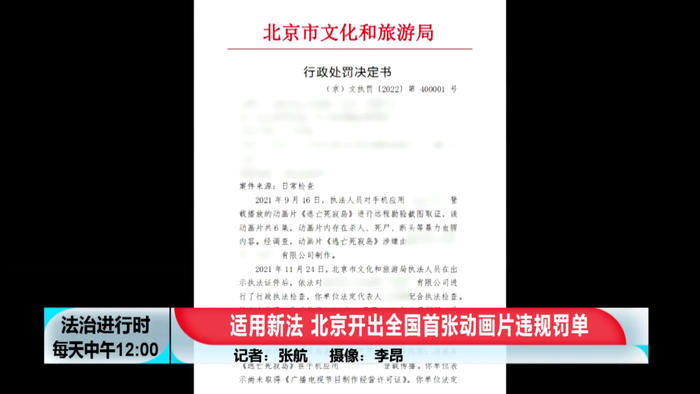 全国首例!北京向动画片《噩梦时代前传》开出罚单