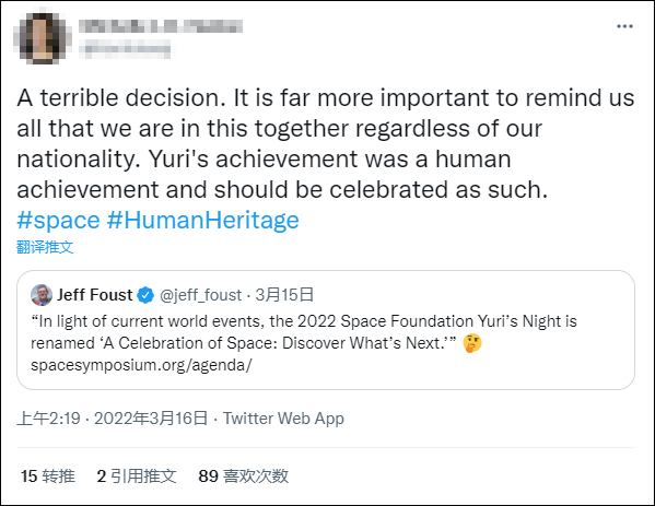“一个糟糕的决定。尤里的成就是人类的成就,应该好好赞扬。”