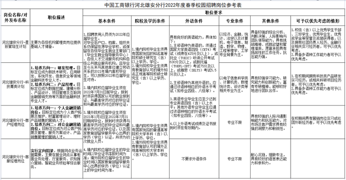 20人!中国工商银行河北雄安分行招聘