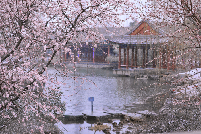 桃花是春天的象征,桃花、桃子与桃木皆在中国文化中被赋予吉祥喜气的寓意。桃花花期为每年3月至6月,此刻正值花时,园博馆中各色桃花次第绽放。
