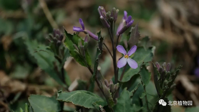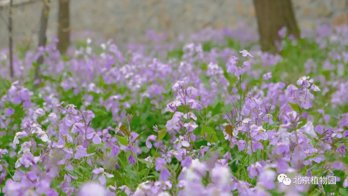 诸葛菜开花量大,结实率高,种子散落在地上次年可萌发形成自播繁育,加上它有着很强的适应力,总能“见缝插针”,因而会出现如季羡林先生描写的“只要有空隙的地方,都是一团紫气”的景象。