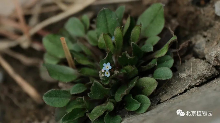 附地菜是紫草科附地菜属植物,一般贴地匍匐生长,茎从基部分枝,多条丛生,叶片为椭圆形或匙形。它的花朵非常小,小到我们常常会忽略它的存在。
