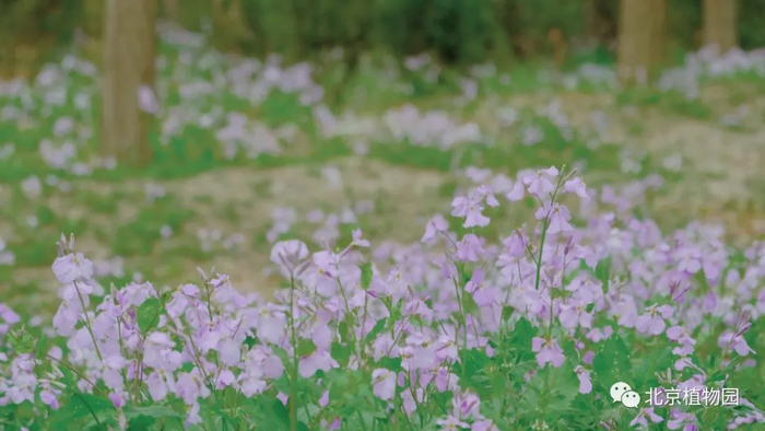 每年春天,无论是林荫空地还是道路两旁,都能见到大片的二月兰花海,微风拂过,成片的淡紫色花朵随风轻轻摇曳,带给人们芬芳愉悦的享受。二月兰中文正式名叫诸葛菜Orychophragmus violaceus,是十字花科诸葛菜属植物,因农历二月开花,花色呈蓝紫色俗称为二月兰。
