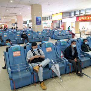 在候车厅内,候车的座位均用透明胶带隔开,乘客间隔就坐,相互保持安全距离。同时,候车厅内对购票、进站的通道都进行了一米划线,也是确保乘客在乘车时与他人保持安全距离。