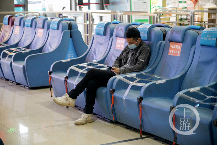“进来后看到车站的防疫工作做得很细致,比如这个座位,是用透明胶带隔开的,这样也不担心安全距离了,大家自觉就隔开了!”3月21日,上游新闻记者从四公里枢纽站了解到,该汽车站为确保旅客安全乘车,已做好了日常防疫消毒工作,车站候车厅的座位也用透明胶带进行隔开,确保乘客安全距离。