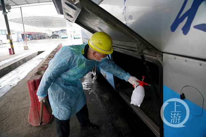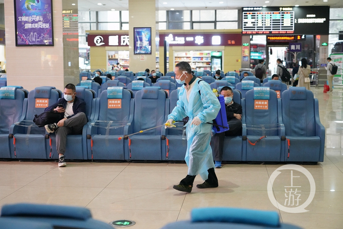 “我们还专门设置有中高风险地区来渝返渝乘客的专用通道,更科学防疫。”四公里枢纽站安保科科长肖波介绍到,除了日常对站场的通风、消毒,针对站场的重点区域,每四小时进行消毒一次。