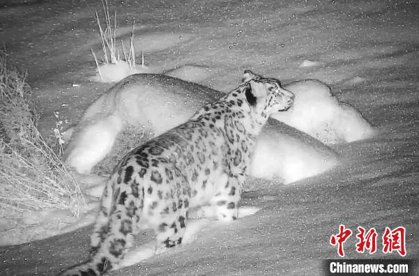 16日凌晨5时35分,在第五师八十八团某边境警务站,民警又意外发现科克苏沟有雪豹出没。根据红外相机追踪的画面,清晰可见一只体长约1.5米的成年雪豹下山觅食。
