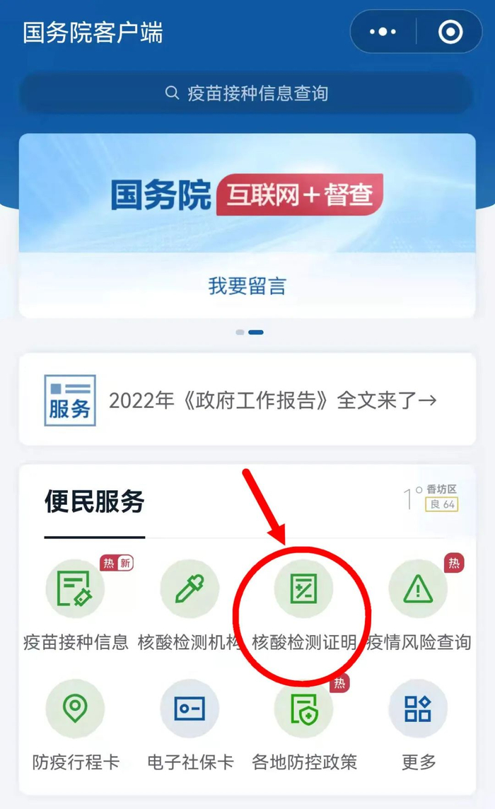 一是登录国务院客户端小程序中“核酸检测证明”功能模块进行查询;