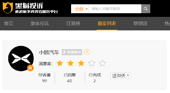 2月黑猫投诉汽车领域红黑榜——小鹏汽车不退定金