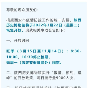 陕西历史博物馆3月22日恢复开放 可网上预约门票