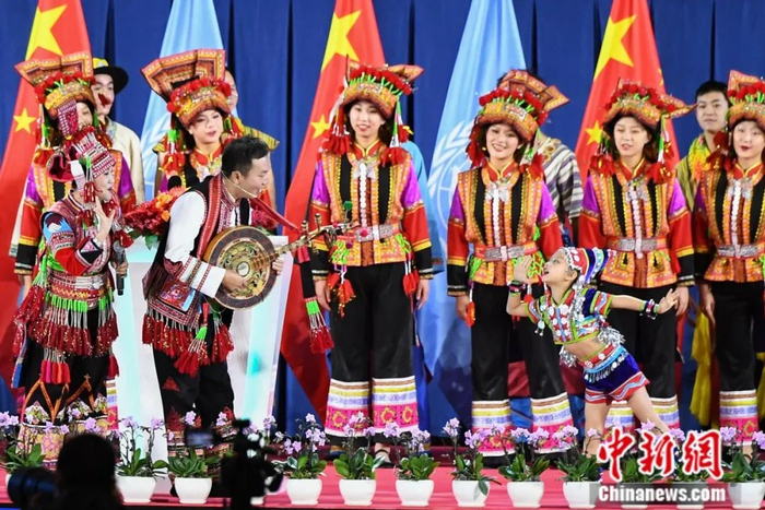 2021年10月,《生物多样性公约》第十五次缔约方大会在云南昆明开幕。图为开幕式上的云南民族特色演出。 中新社记者 崔楠 摄