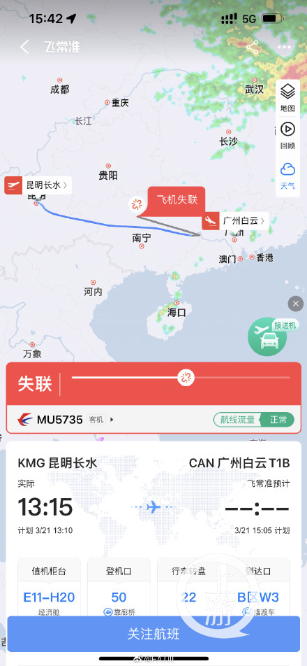 另一个航空自媒体大V号FATIII说:我们正在关注MU5735,暂时未能确定最新情况。