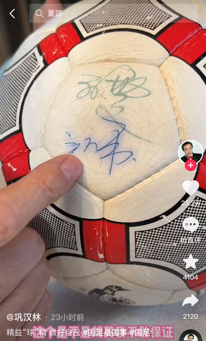 3月17日,巩汉林试图为这场愈演愈烈的争议“灭火”,他在短视频平台晒出自己收藏多年的签名足球,称上面的签名都来自当年中国足坛叱咤风云的人物,有范志毅、马明宇、黎兵、区楚良等人,“说句真心话,凡是中国球迷,都不希望自己的球队倒下,我们只是爱之深责之切。”随后替中国足球加油助威。
