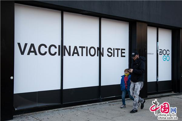 2021年11月19日,行人走过美国纽约一个新冠疫苗接种点。新华社发(郭克 摄)