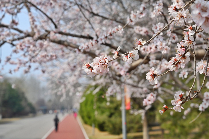 奥林匹克森林公园第11届花卉观赏季暨春花展近日开幕,记者3月23日探访时看到,园内的山桃花、迎春花已盛放。本次“春花展”花期长、品种多,从3月中旬至5月中旬近分批次可欣赏到30余个品种、10万余株的春季花卉。