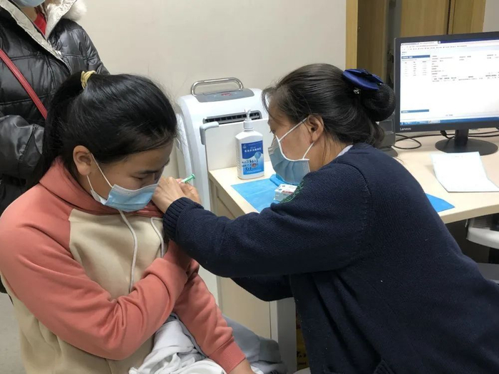 2020年5月18日,在湖北省妇幼保健院,护士为一名来自武汉的女孩注射国产HPV疫苗。新华社记者熊琦摄