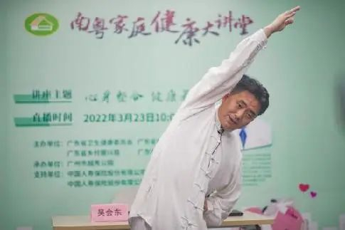 在对心身整合与健康养生进行简单的介绍后,吴会东医生在直播中还对心身整合的实践操作进行教学。吴会东医生亲自示范上肢松柔训练、躯干平转功能和下肢松柔训练等6个心身整合的基本动作,并带领直播间的观众一起做养生操。