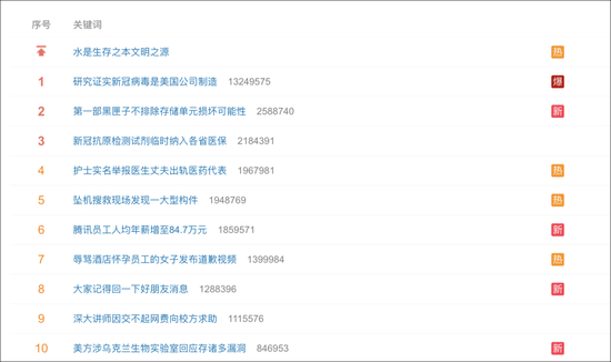 3月24日,“研究证实新冠病毒是美国公司制造”高居微博热搜第一。