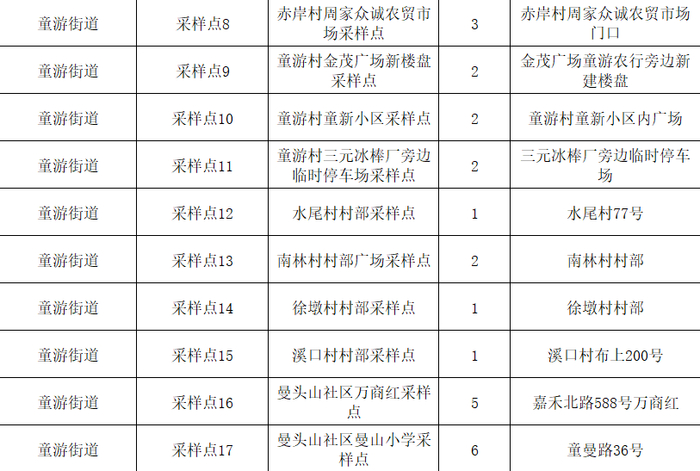 请按照所在村(社区)、企业通知的具体时间段,错峰前往就近采样点进行核酸检测。具体详见全区各乡镇(街道)核酸检测采样点一览表(附后)。