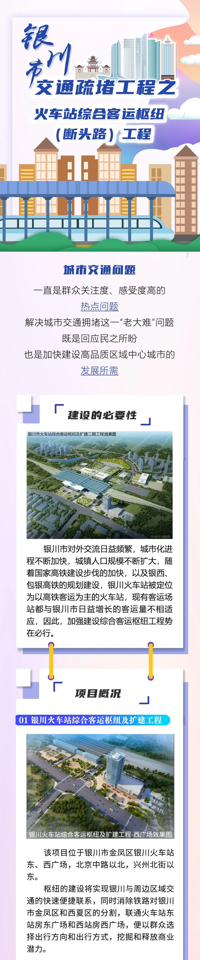 金波告诉记者,待银川综合客运枢纽(扩建工程)火车站通道工程实施完毕后,不仅能够完善火车站周边交通路网,缓解周边道路通行压力,实现旅客的无缝换乘,还能满足未来包兰高铁开通后旅客集散的需求,把火车站打造成现代综合枢纽,更好融入国家“八纵八横”高铁网和黄河流域“几”字弯交通网,进而为银川建设全国性综合交通枢纽城市提供重要节点支撑。