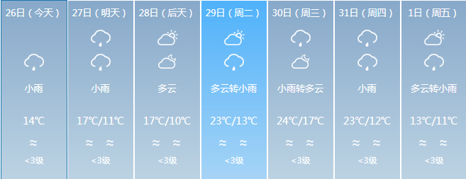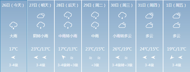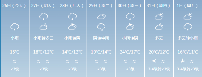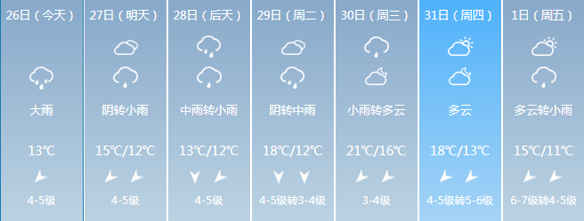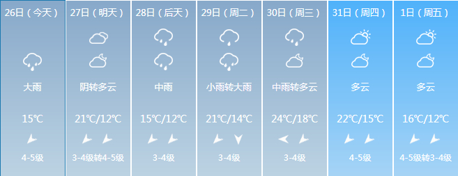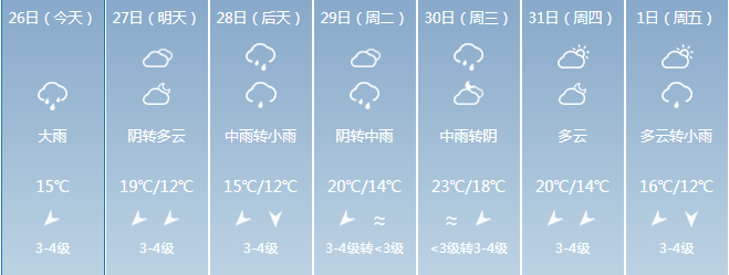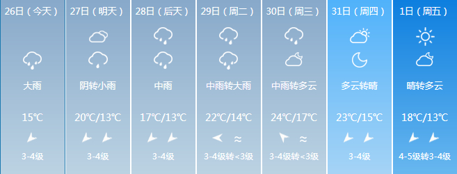 今天傍晚到夜间,沿海和南部地区有中雨,伴有雷电,其中,中南部沿海地区有大雨到暴雨。雷雨时局地伴有短时强降水、8~10级大风、冰雹等强对流天气。中南部沿海的部分县市和海区有大雾。