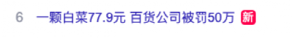 26日,#一颗白菜77.9元,百货公司被罚50万#消息冲上热搜。