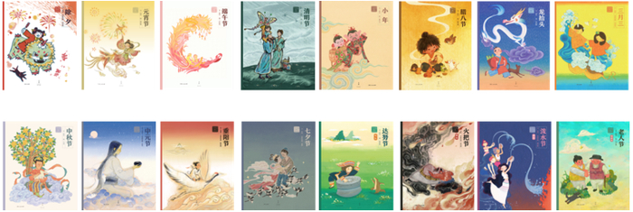这是一套由向华创作故事、央美绘本工作室的插画师绘制的原创绘本,取材于传统文化中的民间故事。一共16册,每一本介绍一个传统节日,包括汉族的七大传统节日、重要的古代节日和少数民族节日。