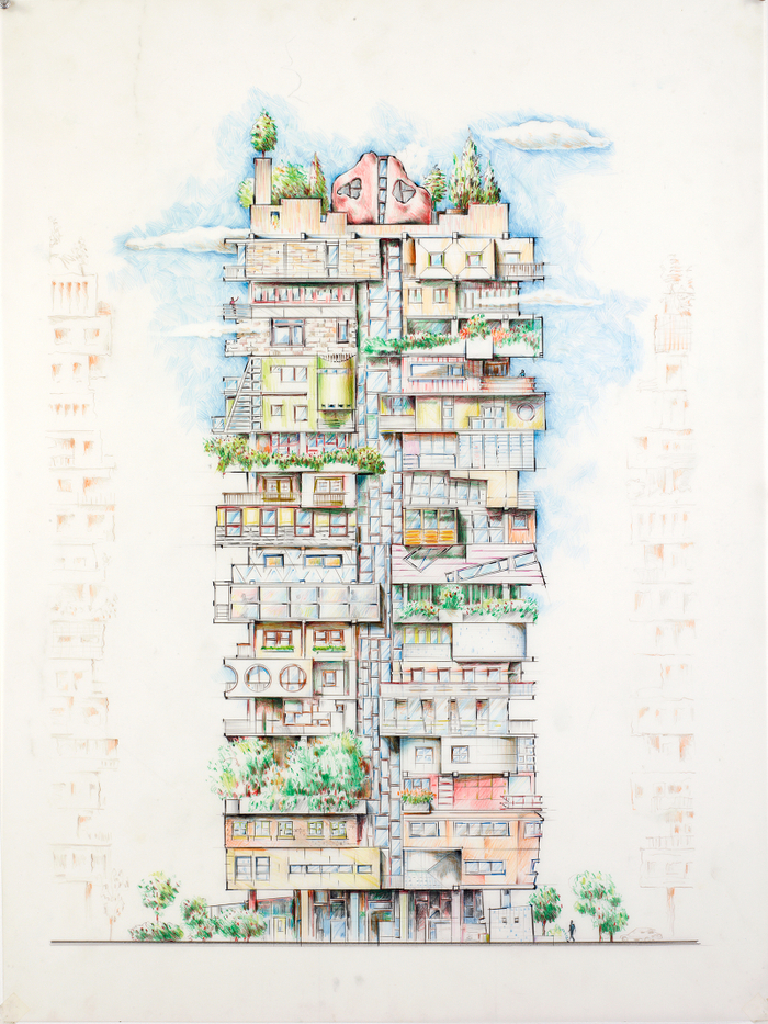 多元性,是佩谢作为建筑师的梦想。1987年,他提出“多元论建筑”的方案,邀请不同建筑师来设计一层楼。这个未建成的建筑图纸,看上去就像英国童书《100层的巴士》一般充满想象力。