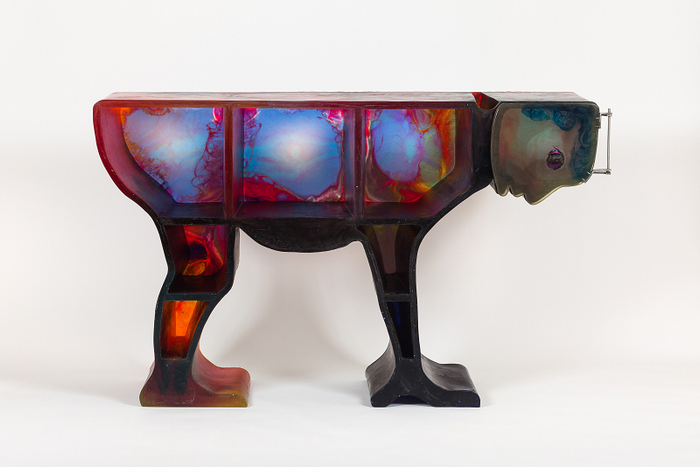 佩谢通过对新材料的不懈研究、对色彩的无限制使用,模糊了设计和艺术的界限。在他手上,树脂可以做成坚固的家具,也能做成柔软清透的画。因为树脂这种材料的特殊性,其色彩可浓烈可清透,造型也可以天马行空、自由无拘。恰如他曾经说的,“我的工作是表达自由,而不是关心规则。”