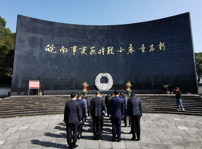 清明至,祭英魂。在这个慎终追远、思古怀今特殊时刻来临之际,我缓步走进安徽泾县皖南事变烈士陵园,为英烈们的墓碑轻拭灰土,在邓小平同志亲笔题写的“皖南事变死难烈士永垂不朽”纪念碑前深深鞠躬,向烈士致以深切的思念,献上崇高敬意。