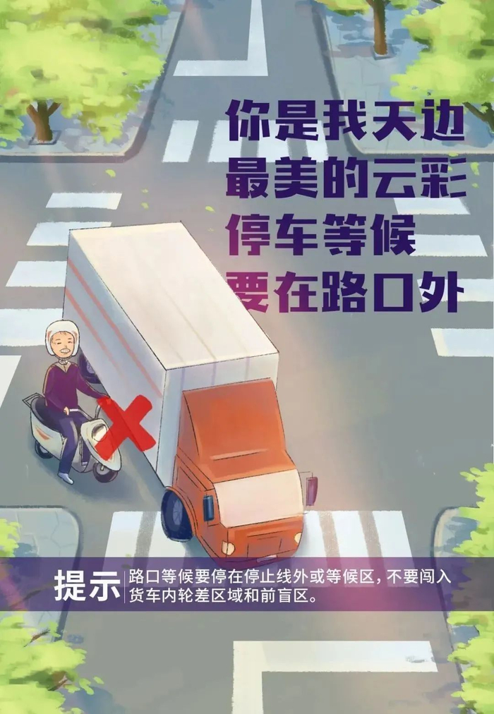 2、步行出行时一定要走人行道,千万不能在机动车道上行走,避免被过往车辆撞到,特别要注意货车内轮差区域和前盲区;此外,在路边行走时,注意路边停放的车辆的动态,防止被突然打开的车门撞倒。