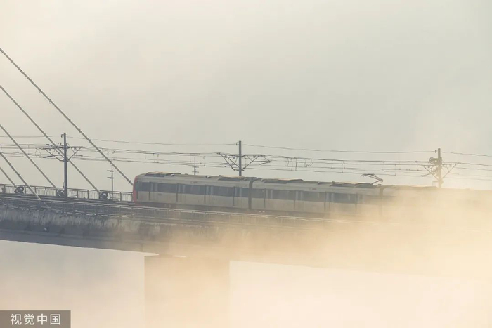 重庆轨道交通6号线行驶于大桥上