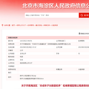 《关于开展海淀区“未成年子女数量较多”轮候家庭配租公租房意向登记公告》