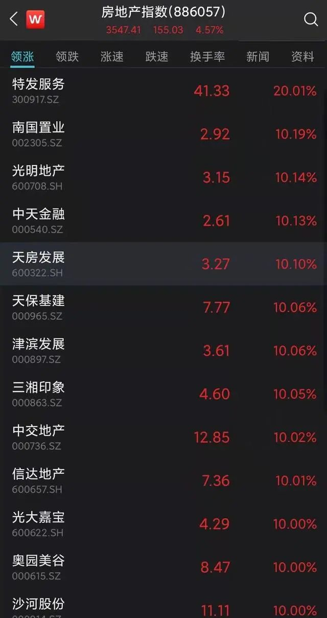3月30日,A股房地产开发板块再掀涨停潮,南国置业、光明地产、天房发展、天保基建、津滨发展、三湘印象、中交地产、信达地产、光大嘉宝、沙河股份、珠海股份、世荣兆业、绿地控股、大龙地产、海泰发展、中国武夷、渝开发、特发服务、汇通能源等集体涨停。
