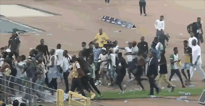 终场哨声一响起,大批现场球迷观众翻过看台,冲进阿布贾国家体育场场内,追打群殴球员,大肆破坏球场设施泄愤,还与警察、球场安保人员发生激烈冲突。报道称,阿布贾国家体育场可容纳6万人,这场比赛光是免费门票就发放了2万张,现场观众只有少部分是加纳球迷。