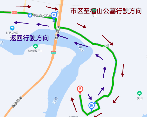 4月5日、6日、9日、10日,每日8时至17时,前往福山公墓的车辆,可由阳和南路经洛维大桥桥底道路行驶至立冲村、福山公墓,回城时原路返回。
